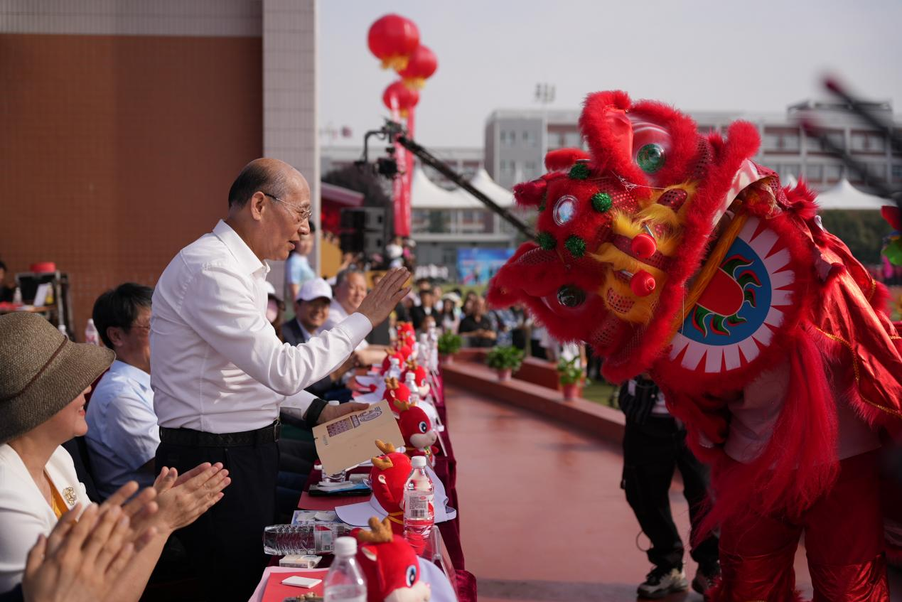 学生表演方队向理事长张晋生献礼祝福建校30周年