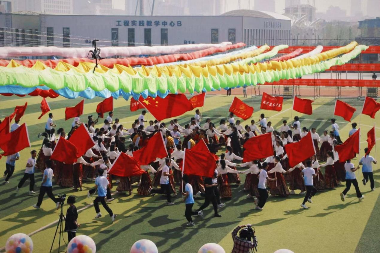 在运动场地中央,各学院精心筹备的大型团体操逐一与全校师生见面,艺术舞蹈《相亲相爱》用一面象征新中国成立75周年的大旗和一面象征建校30周年的大旗,展现爱校深情和无法割舍的家国情怀;响扇健身操《骁》诠释着交院学子的坚毅与勇敢,同学们用“2024 XJY”的字样,祝福母校桃李满园、积叶长青;手翻花表演变化成各种颜色,彰显着交院学子崇尚体育,奋斗向上的精神面貌,同学们用队形和色彩变化组成了“1994”“30”“礼”的造型,用声声呐喊祝福母校30周年生日快乐。让全体师生享受了一场视觉盛宴。