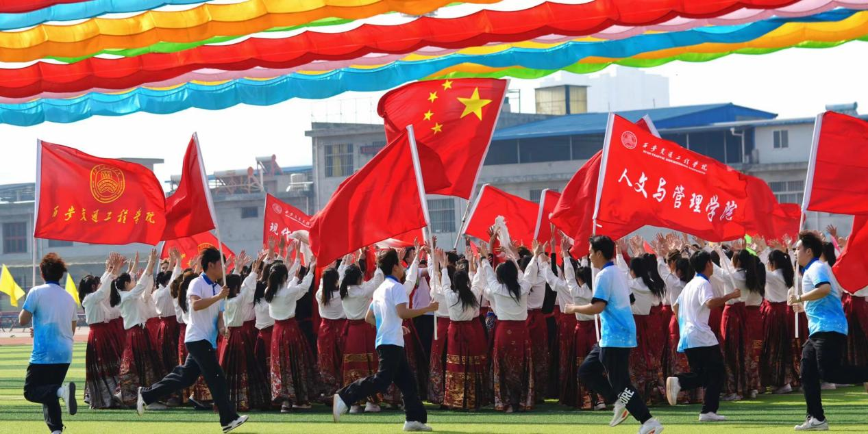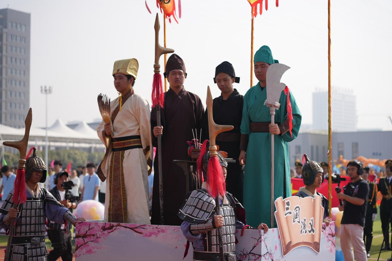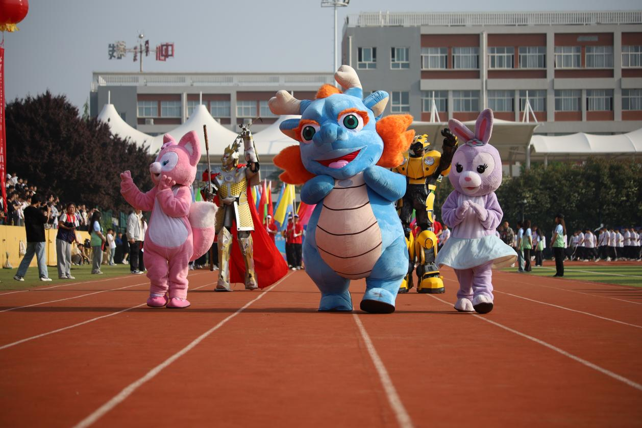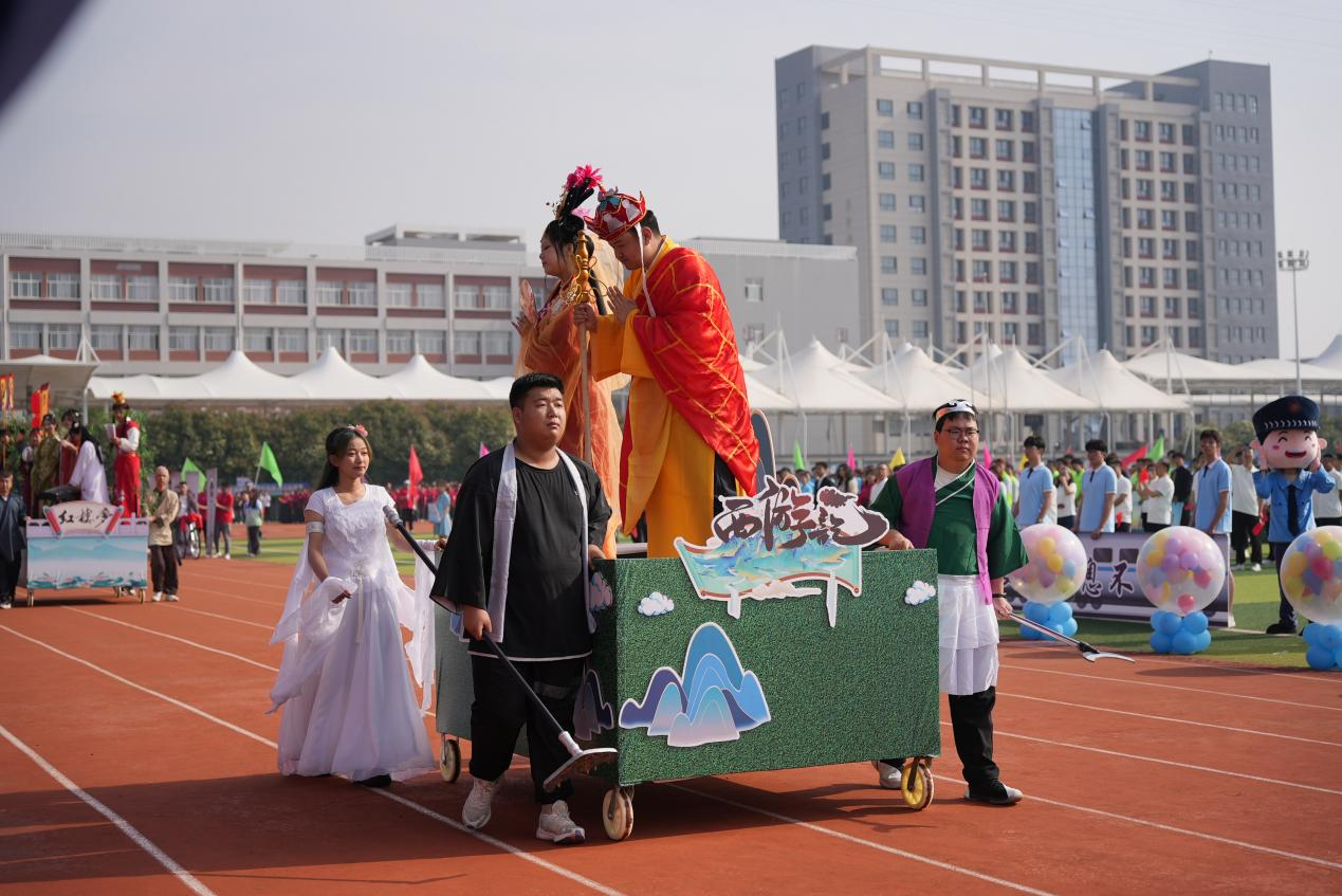 上午八点三十分,伴随着伴着激昂的进行曲,国旗方队、校旗方队、裁判员代表队、运动员代表队、团体操表演方队等19支队伍迈着矫健的步伐,在师生的瞩目下入场:英姿飒爽的旗手、青春亮丽的引导员、可爱俏皮的吉祥物、高大威猛的齐天大圣和大黄蜂机甲,具有交院特色的IP形象--西小交、西小美也在本届运动会亮相。行经主席台,交通运输学院代表队用“绿皮车”到“复兴号”,演绎铁路交通的变迁,展现中国式现代化建设历史的生动缩影;土木工程学院代表队则用中国传统工艺鲁班大师榫卯结构巧妙设计了“盛世中华”的立体结构,用队形和展板展示了中国桥隧建筑的绝世风采;机械与电气工程学院用展板生动展示了我校三迁校址、四更校名艰苦卓绝的发展历史;人文与管理学院代表队用活力四射的舞步,阳光热情地展示了交院学子的青春风采;现代技术学院代表队文儒风雅,一把折扇、一支中国舞将“书生意气,挥斥方遒”展现的淋漓尽致;中兴通信学院代表队用四辆花车栩栩如生地展现了中国四大名著《西游记》《红楼梦》《水浒传》《三国演义》的经典魅力。师生用复古摇曳的音乐和舞步诠释中国通讯技术从1G时代到5G时代的迅猛发展。各代表队别出心裁,无不诉说了对伟大祖国、对西交院真挚浓烈的爱。