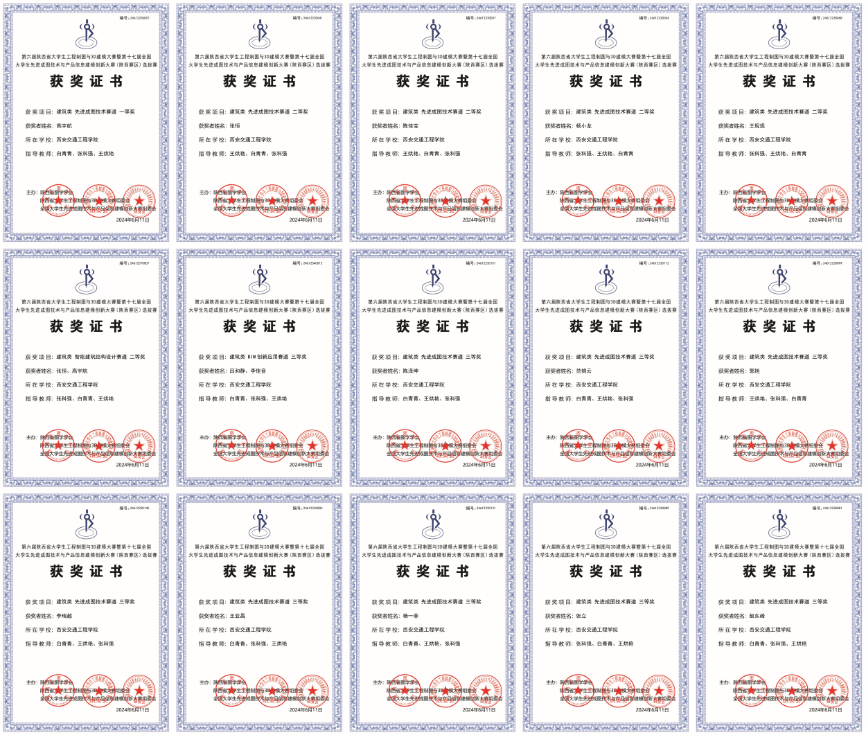 在学校各部门的高度重视和学院师生大力支持下,历经报名、培训、指导学生进行系统训练,至今年5月校内选拔赛结束后,入围省赛的学生及指导教师利用课余时间进行强化训练,从基础知识讲解到三维设计软件的应用,通过线上线下集中讲授辅导、一对一辅导、答疑等多种形式对参赛学生进行全面指导。最终,高宇航获得先进成图技术赛道一等奖,杨小龙、张恒、陈佳宝、王规规获得二等奖,王亚昌、范锦云、赵东峰、杨一菲、张立、郭旭、陈泽坤获得三等奖,吕和静、李佳音获得BIM创新应用赛道三等奖,张恒、高宇航获得智能建筑结构设计赛道二等奖。
