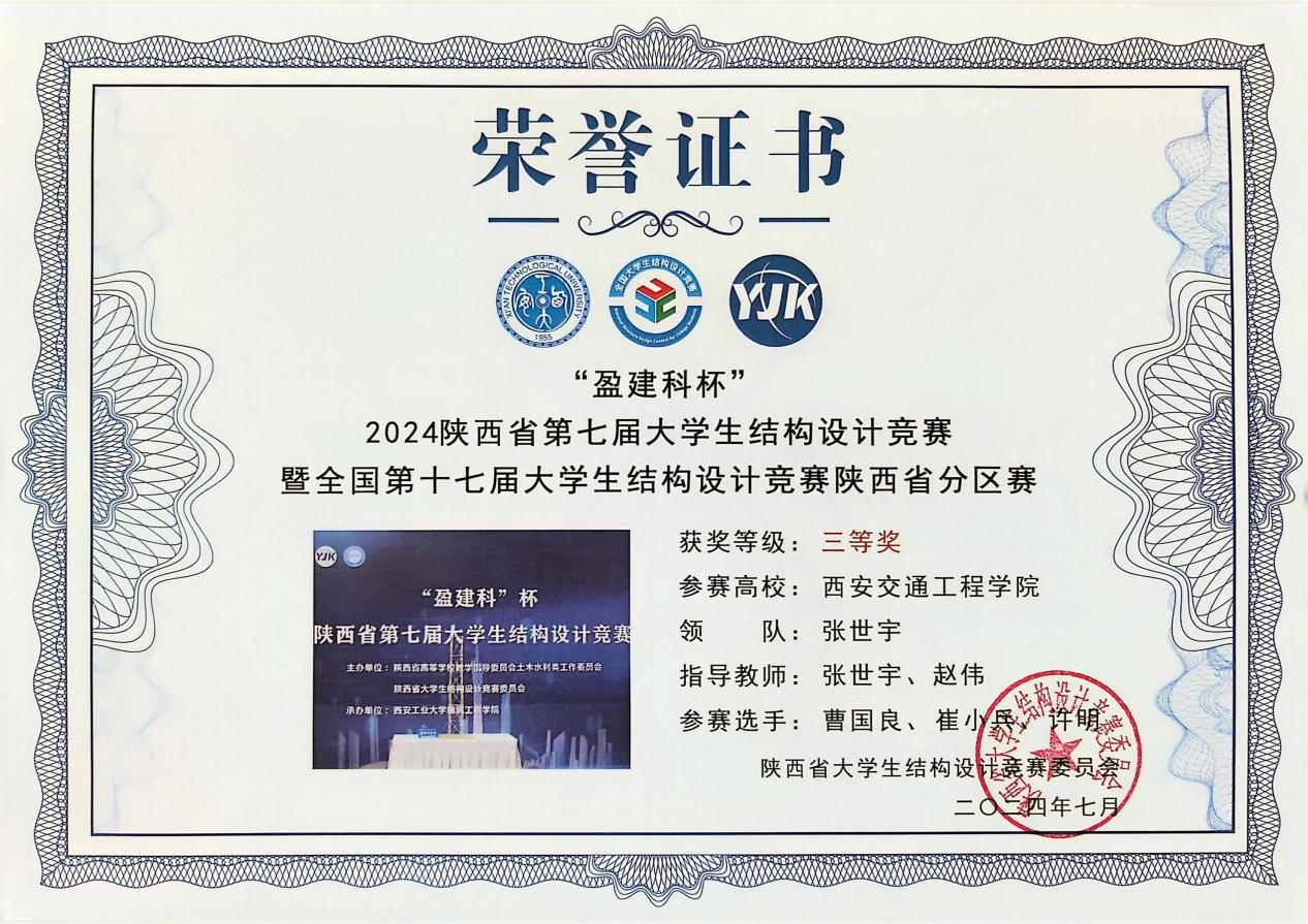 7月19日—21日,由陕西省高等学校教学指导委员会土木水利类工作委员会、陕西省大学生结构设计竞赛委员会主办,西安工业大学建筑工程学院承办的“盈建科”杯陕西省第七届大学生结构设计竞赛顺利举办并落下帷幕。共有来自西安交通大学、西北工业大学、长安大学、西安建筑科技大学、西安理工大学、陕西理工大学等21所高校48支队伍300余名师生参加。我校土木与铁道工程学院教师张世宇和赵伟指导学生组成的“芒果不忙队”、许又文和刘龙刚指导学生组成的“奇思妙想队”分别获得“三等奖”。