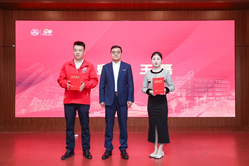 党委副书记、工会主席张庆生为校友代表颁发“星光校友”证书