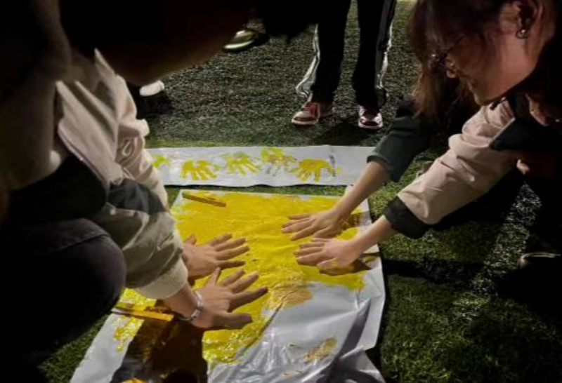 学子们以掌为印,以掌留名,为母校送上三十周年最最特别的校庆礼物