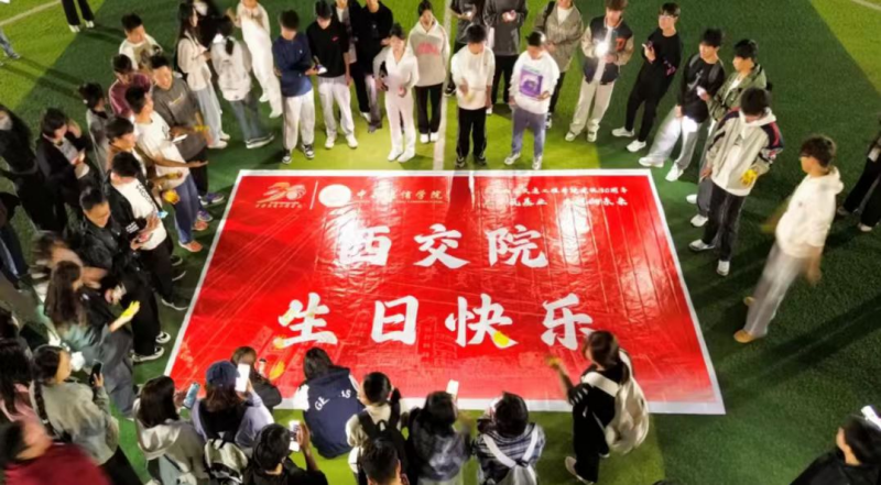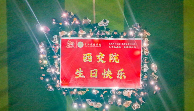 17日晚,中兴通信学院在体育场“准时准点”为母校送上祝福