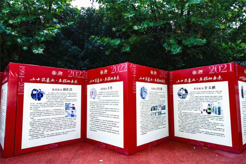 在图书馆一楼开展的建校30周年办学成就展以“30”造型向母校致敬