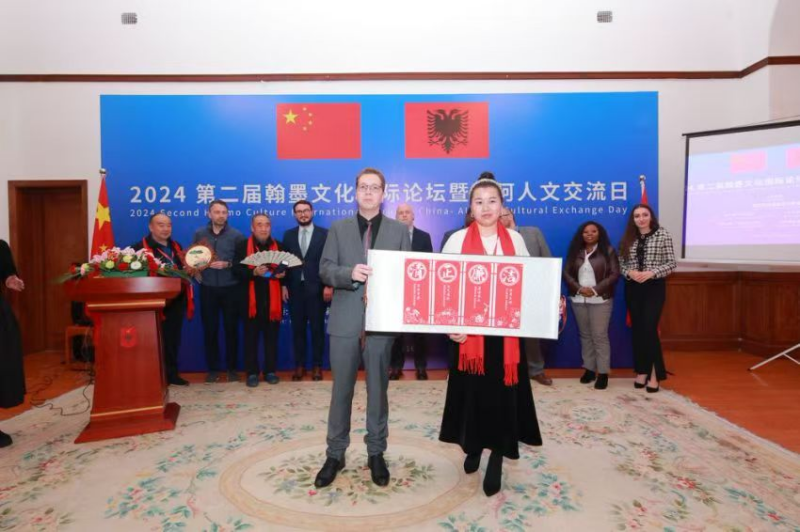 在此次翰墨文化国际论坛暨中阿人文交流日上,国礼委员会授予丁丽梅“中华国礼艺术家”荣誉称号。其剪纸作品《清正廉洁》被选定为中国国礼艺术品并赠予阿尔巴尼亚大使。该作品以中国传统剪纸艺术为载体,巧妙融合了中华文化的精髓与现代审美,展现了她深厚的艺术功底和独特的创作理念,不仅传递了中国传统文化中的廉洁思想,更体现了中国艺术家对国际友好交流的真诚愿望。