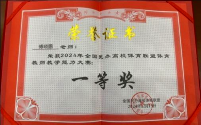 2024年12月13至16日,由全国民办高校体育联盟主办的体育教师讲课比赛在成都理工大学工程技术学院隆重举行。来自全国58所院校160名教师参加了比赛,竞争异常激烈,我校公共课部体育教师傅晓鹏荣获一等奖。李小坤获优秀指导教师。