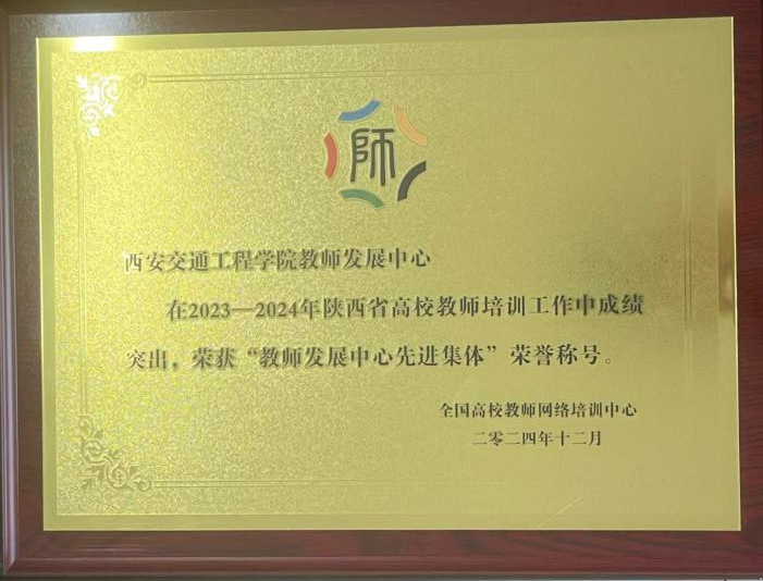 近日,全国高校教师网络培训中心授予我校教师发展中心“2023—2024年陕西省“教师发展中心先进集体”荣誉称号,全国高校教师网络培训中心是教育部高等教育司和教师工作司直接领导的高校教师培训机构,承担教育部高等教育司和教师工作司交办的各类高校教师培训任务,在高等教育领域有重要影响力。