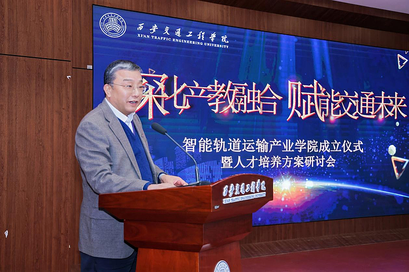 学校校长曹庆年在致辞中表示,学校深耕轨道交通领域教育十余年,目前已建成 3282.82 平方米的实验中心和 5400 平方米的实践基地,累计为行业输送数万名专业人才。他指出,智能轨道运输产业学院的成立,是学校落实 “交通强国” 战略、服务陕西 “一带一路” 核心枢纽建设的关键举措,也是破解 “人才培养与产业需求脱节” 问题的重要实践,将推动校企协同育人进入新阶段。