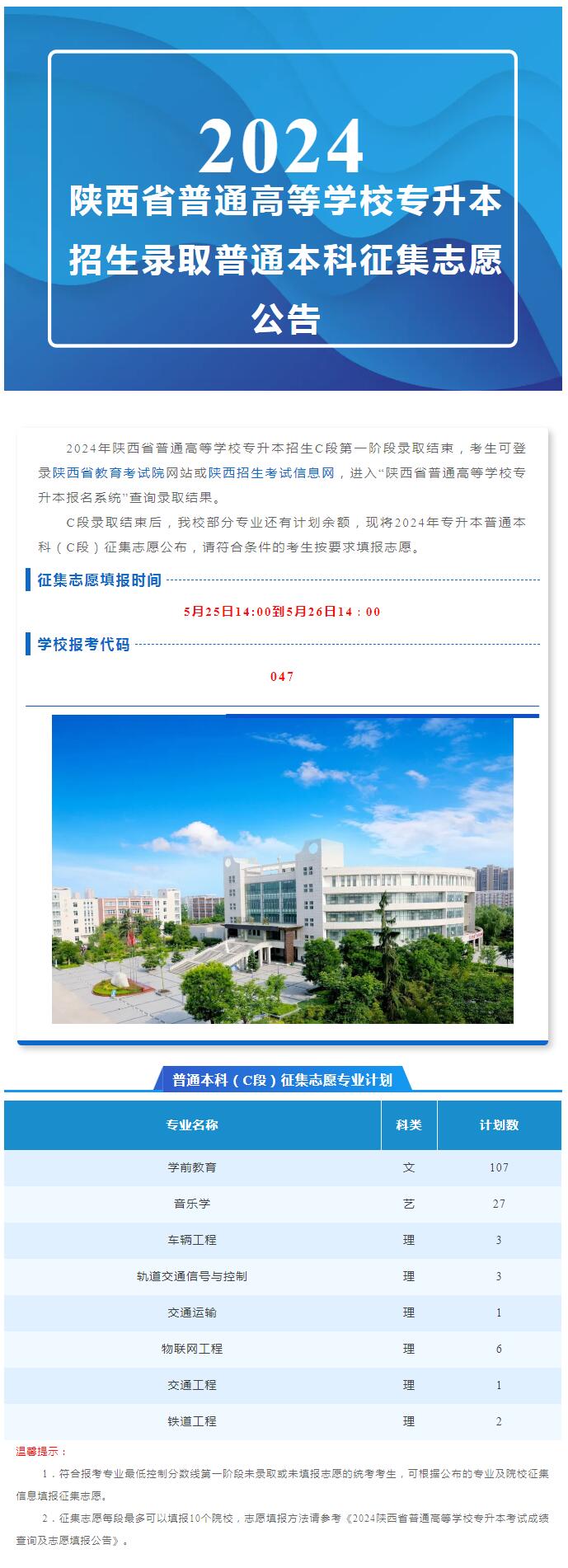 专升本必看||2024年陕西省普通高等学校专升本招生录取普通本科征集志愿公告