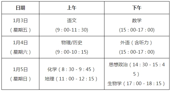 特别提醒:考试第三天考试科目较多,各科考试之间间隔较短,请大家务必注意自己选考科目开考时间。