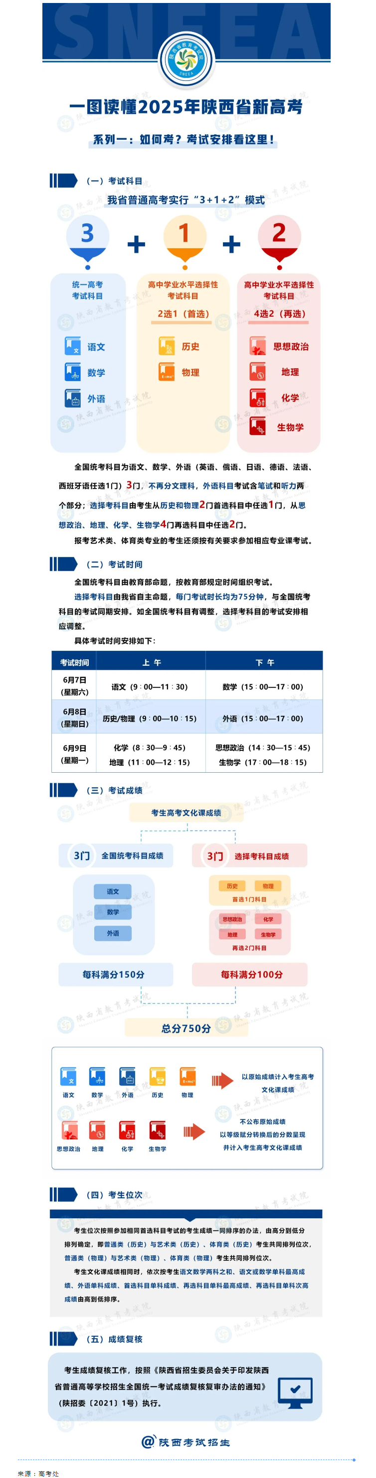 【政策解读】一图读懂2025年陕西省新高考系列一:如何考?考试安排看这里!